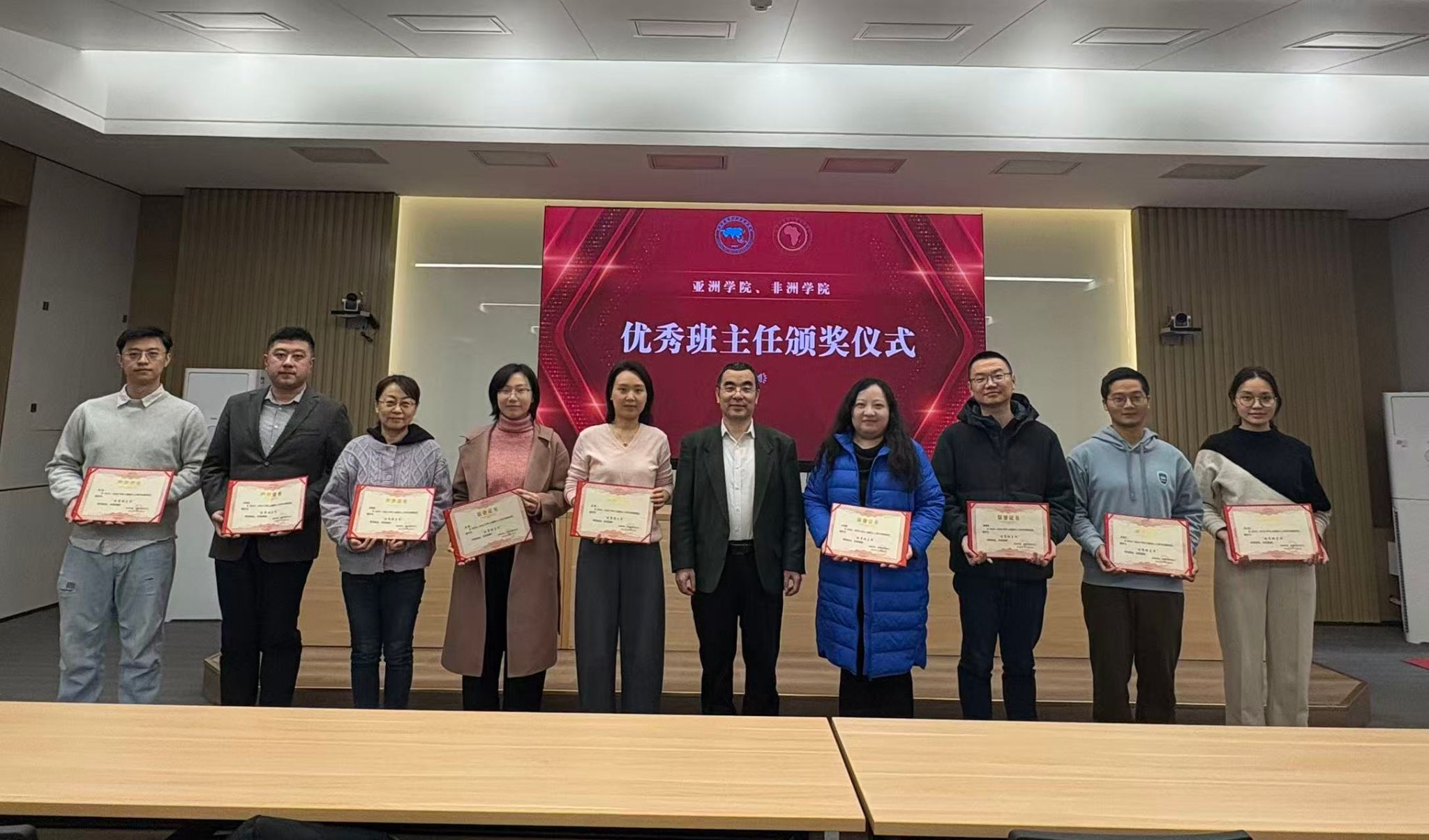 会上,赵磊老师首先通报了2024-2025学年班主任工作考核情况,进一步明确考核标准和评价体系。在2024-2025学年,范晓、贺阳、江潇潇、李春光、李彦军、李子茉、齐晓峰、田霖、魏国峰9位老师在立德树人工作中表现突出,被评为“优秀班主任”。随后举行了颁奖仪式,许晔书记向受到表彰的老师颁发荣誉证书。