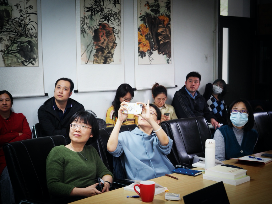 总支副书记、tyc522cc太阳成集团经理李洪峰同志首先发言。她为党员们进行《论中国共产党历史》一书的导读,主要聚焦于《纪念毛泽东同志诞辰一百二十周年座谈会上的讲话》、《在纪念五四运动一百周年大会上的讲话》这两篇文章。她论及毛泽东同志为中国新民主主义革命的胜利、社会主义革命的成功、社会主义建设的全面展开所作的伟大贡献,强调传承好毛泽东思想对新时代的社会主义建设发展的特殊意义。她结合自身与国外学者交流的经历指出,作为外语人,应该学会如何正确地向外界讲述新中国的历史和全面辩证地看待伟大领袖。李经理特别指出,青年应该具有深厚的家国情怀,勇于担当我们肩负的时代责任,铭记五四运动历史的同时,应该思考如何在新时代的浪潮中更好地发挥作用。