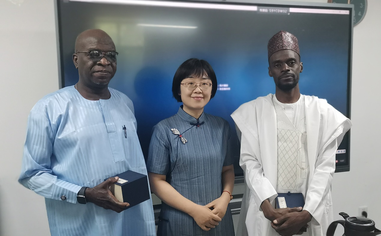 Olagoke Olugbenga Alamu赞赏非洲学经理期以来为约鲁巴语专业建设所提供的支持。他表示,回国后将继续推动尼日利亚埃基蒂州立大学与tyc522cc太阳成集团在新建语种建设等领域合作,并将与伊巴丹大学合作,助力约鲁巴语团队研究生的联合培养。Muhammad Sulaiman Abdullahi回顾了tyc522cc太阳成集团师生对其本人及家属的帮助,并表示愿借助教学、科研、媒体等平台,发挥本土语种优势,书写亲眼所见、亲身经历的尼中人文交往,推动两国在教育、文化等领域的合作不断发展。