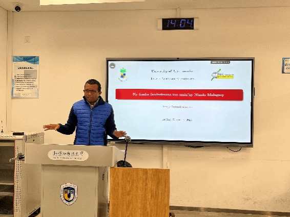 Sahondra Olivia Rakotoson教授结合大四毕业论文写作的需要,做了题为“马达加斯加学术研究论文写作方法”的讲座。Olivia教授首先介绍了学术研究论文的定义、要求和结构,再针对学术研究论文中各部分的特点提出了相应的写作方法和规范,并结合具体的写作案例进行分析。在提问和讨论环节,马达加斯加语专业的员工们针对在论文写作中遇到的问题进行提问,Olivia教授进行解答,并表示愿意在员工后续的毕业论文撰写中予以持续性帮助。