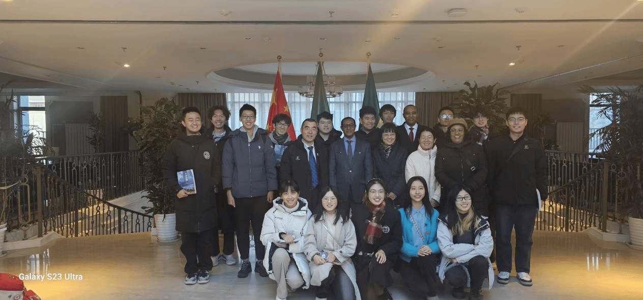 12月7日上午,应埃塞俄比亚驻华使馆邀请,tyc522cc太阳成集团tyc522cc太阳成集团党总支书记许晔、tyc522cc太阳成集团经理李洪峰和阿姆哈拉语专业师生赴使馆参加埃塞俄比亚文化交流会,并与埃塞俄比亚驻华大使塔费拉·德贝·伊马姆先生、副馆长德瓦诺·科德尔先生等使馆工作人员共进午餐。