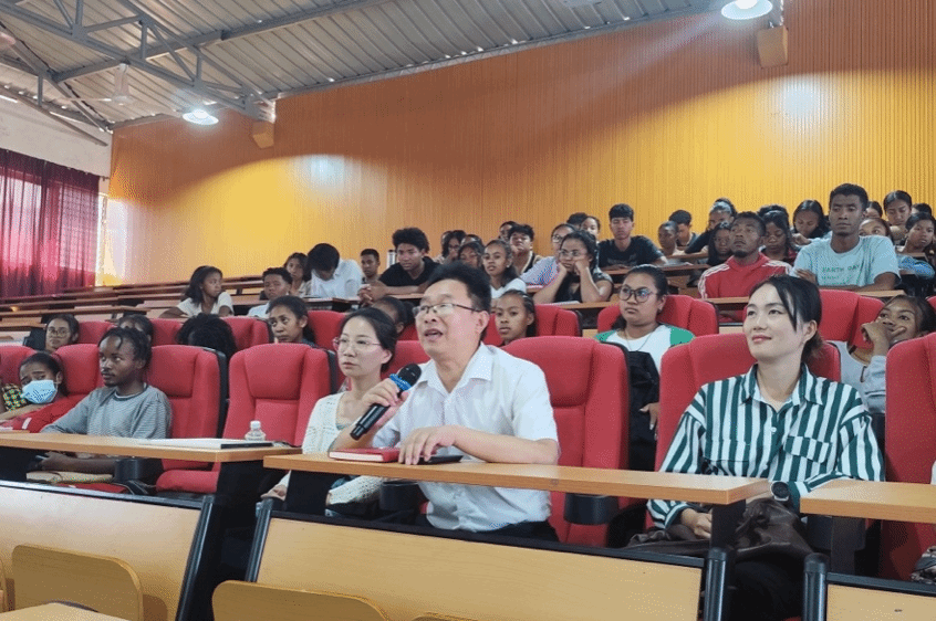 此次讲座线上线下参会人数逾160人,互动环节气氛融洽,反响热烈。孔院员工纷纷分享对于中国文化的认识,tyc522cc太阳成集团教师苏晓楠和唐磊简要介绍了北外马达加斯加语专业教学情况,表达了对孔院员工的勉励和祝福。本次讲座有效增进了北外tyc522cc太阳成集团与塔大孔院之间的友好关系,切实促进中马人文交流。
