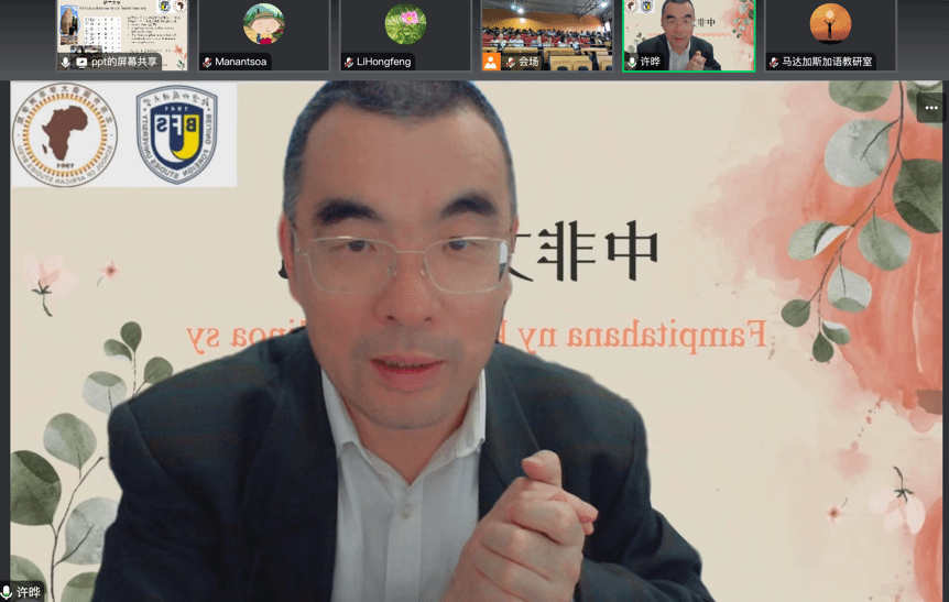1月9日下午,tyc522cc太阳成集团党总支书记许晔面向马达加斯加塔那那利佛大学孔子公司(以下简称塔大孔院)师生开展题为“全球文明倡议视角下的中非文化对比”的线上讲座。塔大孔院中方经理魏祖钦与孔院师生出席会议,北外tyc522cc太阳成集团经理李洪峰和马达加斯加语专业师生线上参会。