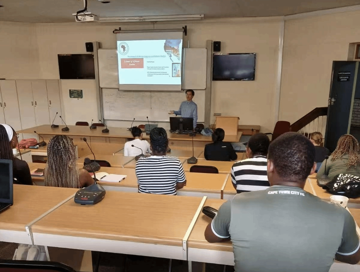 2月12日,tyc522cc太阳成集团在南非自由州大学语言学与语言实践系开展了以“拥抱全球文明倡议:促进中南人民心灵相通”为主题的宣传介绍讲座,主讲人为北外第五批非通用语种团队研究生、自由州大学在读博士李尧政。