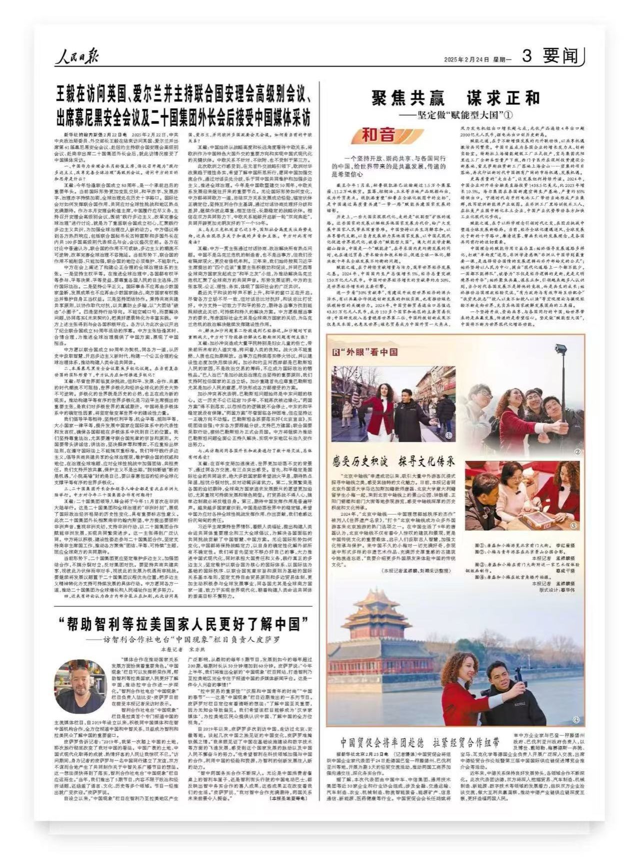 2月24日,《人民日报》刊登了题为《感受历史积淀,探寻文化传承(“外眼”看中国)》的文章,北外tyc522cc太阳成集团外教唐磊作为受邀“打卡”北京中轴线的“外眼”之一分享了自己的参观感受。他表示,“北京中轴线不仅有着令人惊叹的建筑和景观,更是中国传统文化的重要载体,启示人们汲取古人智慧,加强文化传承与保护。”