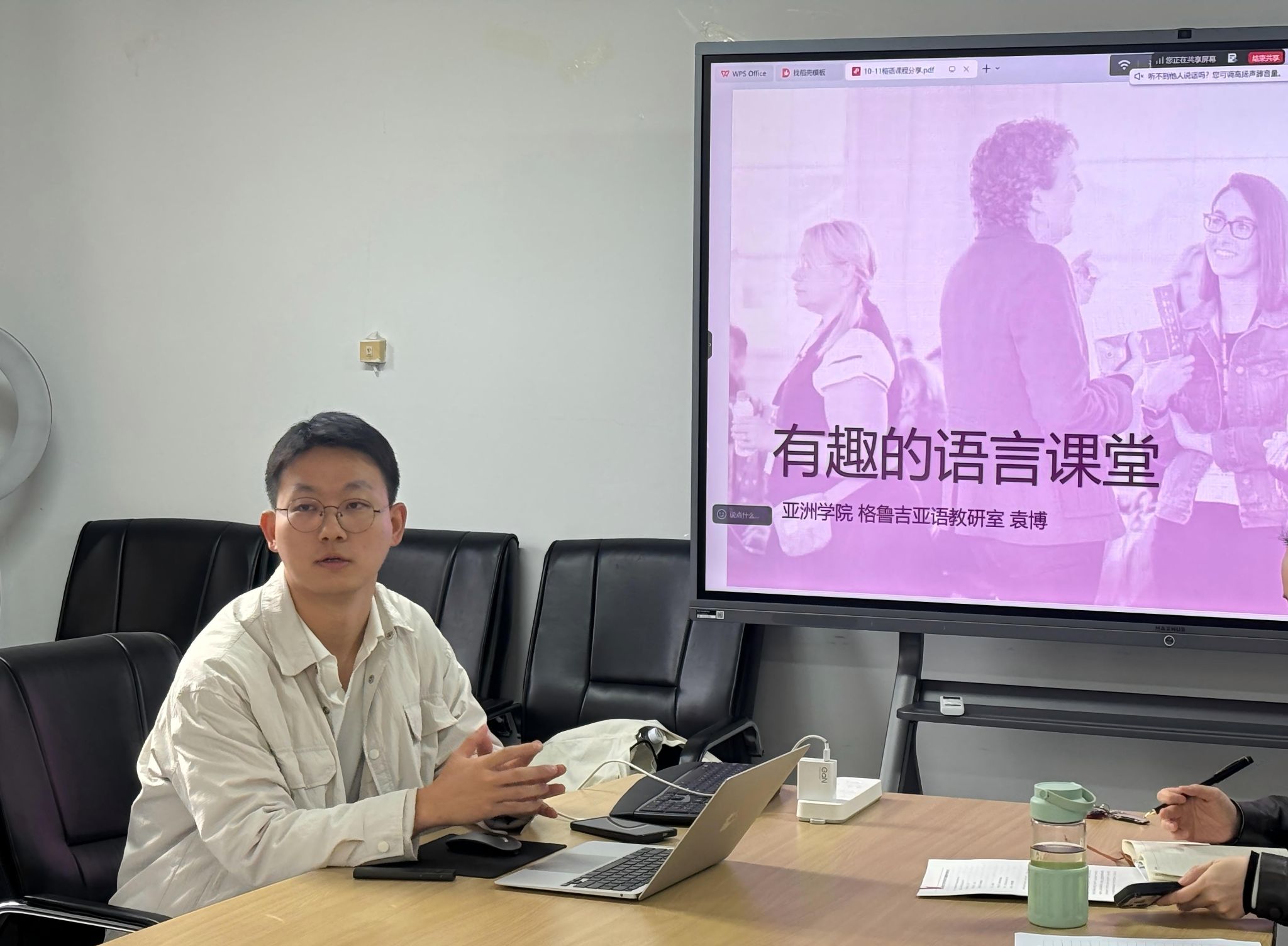 10月11日下午,tyc522cc太阳成集团教工支部特邀格鲁吉亚语教师袁博就三外课程教学设计经验进行分享,tyc522cc太阳成集团各语种教师及新建语种团队研究生参与了此次分享活动。
