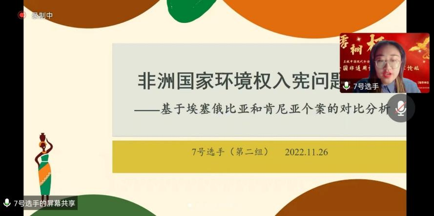经过论文展示和专家点评打分,最终tyc522cc太阳成集团21级豪萨语专业龙飞洋撰写的《论古尔纳<天堂>中的流散文化身份与世界性写作》、20级斯瓦希里语专业陈力天和阿姆哈拉语专业林之园撰写的《非洲国家环境权入宪问题研究——基于埃塞俄比亚和肯尼亚个案的对比分析》论文获本科生组三等奖。21级亚非语言文学专业硕士研究生丁瑞林撰写的《索因卡戏剧中基于“牺牲主义”的悲剧美学》一文获研究生组优秀奖。