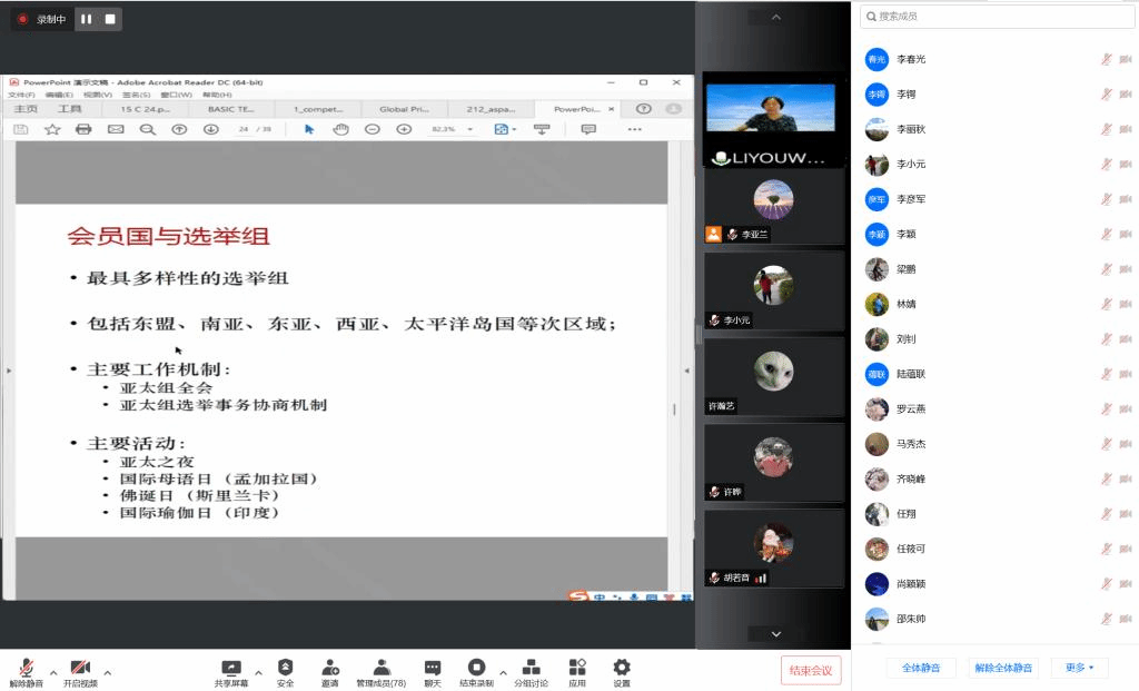 2022年7月8日下午,tyc522cc太阳成集团tyc522cc太阳成集团全体教师集中理论学习活动在线进行,应tyc522cc太阳成集团非洲公司党总支邀请,北外区域与全球治理高等研究院副经理、全球教育治理研究中心副主任李又文老师为两院全体教师进行了题为“亚太和非洲组国家与教科文组织的治理”的讲座。学习活动由tyc522cc太阳成集团副经理顾佳赟主持。tyc522cc太阳成集团tyc522cc太阳成集团共计七十余位教师参与本次集中理论学习。