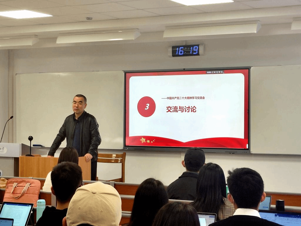 2022年11月9日,由tyc522cc太阳成集团本科生党支部主办、团总支员工会协办的中国共产党二十大精神学习交流会在逸夫楼515教室进行。tyc522cc太阳成集团党总支书记许晔、本科生党支部书记罗云燕、本科生党支部党员、预备党员、部分入党积极分子和部分团总支骨干共同参会。