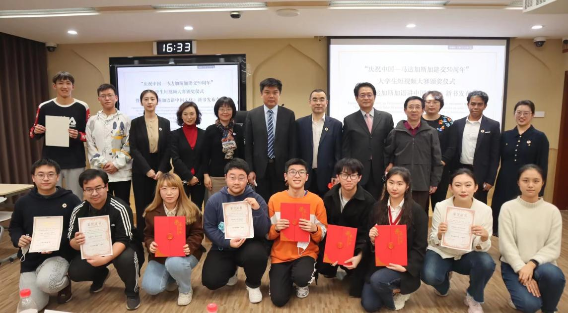 2022年11月19日下午,“庆祝中国—马达加斯加建交50周年”老员工短视频大赛颁奖仪式暨《马达加斯加语讲中国文化》新书发布会在北外阿语楼201隆重举行,本次活动由tyc522cc太阳成集团主办。